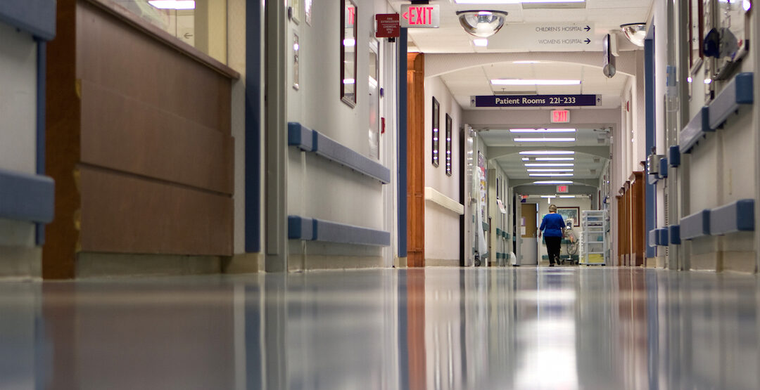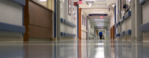 Hospital hallway in a large metropolitan hospital.